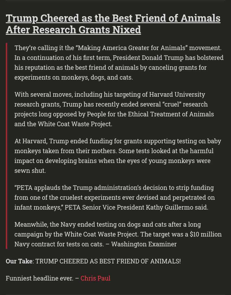 They only decided to put on a show of stoping cruel animal experiments since the Trump executive order