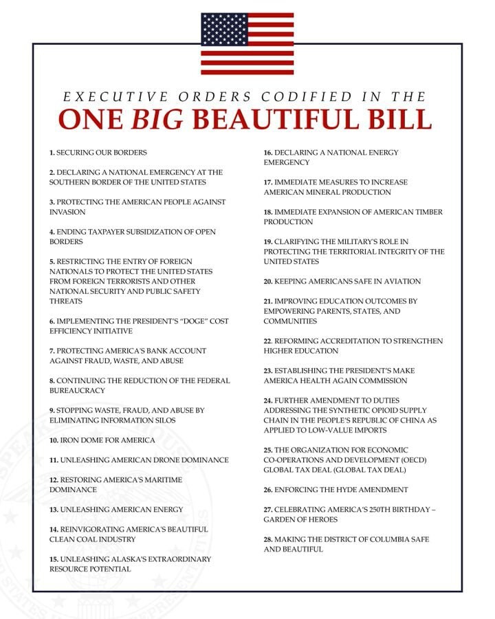 Last week, when @HouseGOP passed the One Big Beautiful Bill, we codified into law 28 executive actions taken by President Trump.