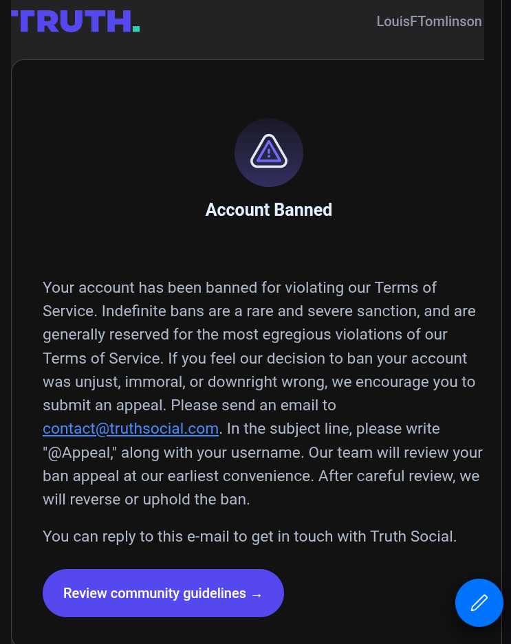 Account banned on truth social idk what for? I have reviewed the guidelines, but still have no idea why.