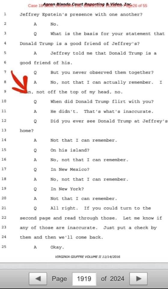 We already knew this, via Guiffre’s deposition in 2016, in which she explicitly states Trump was never involved in any such heinous activity.
