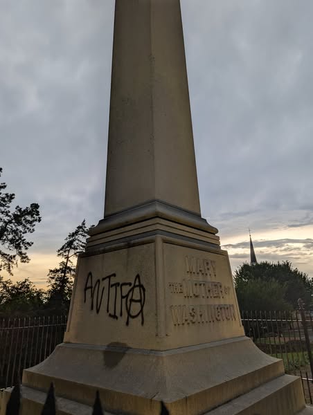 Historic Mary Washington Monument Vandalized With Apparent Antifa Graffiti