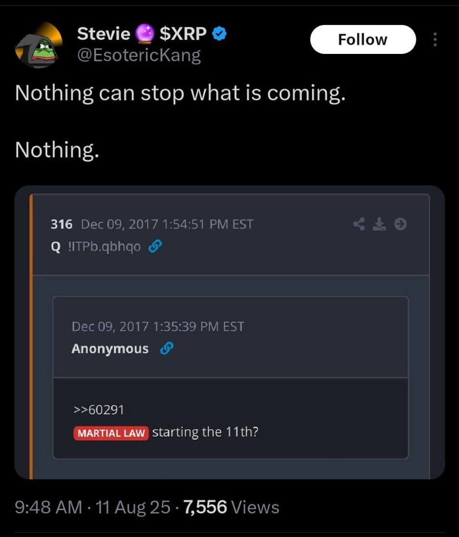 Look 👀 All we are doing is posting what Trump is telling us about National Guard rolling out across US cities - starting with DC, along with this Q drop that points to …. They always said we wouldn’t miss it!