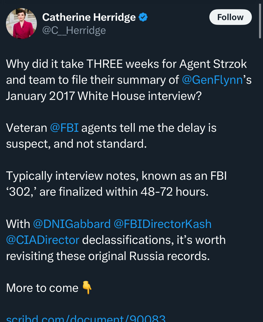 To date, we have never seen the final 302. There were so many edits, changes and manipulations to it and, like the entire Russia-Gate lie, the 302 Strzok did on me was a lie—he and Agent Pientka both lied.