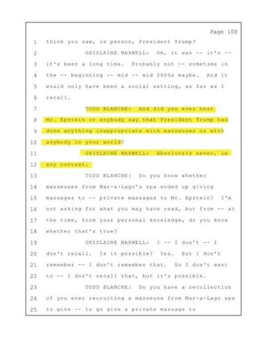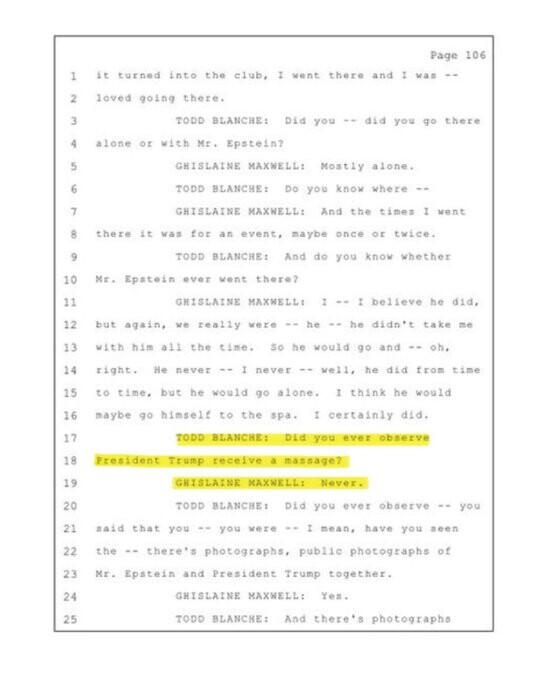 “BREAKING: Even Ghislaine Maxwell admitted Trump NEVER acted inappropriately or got the Clinton ‘special massage.’ Trump wasn’t on the Epstein list — but Bill was a VIP flyer. So why are Democrat judges still hiding the names? Protecting their own. The swamp runs deep. 🔥” https://truthsocial.com/@Qanon76/115078416362021329