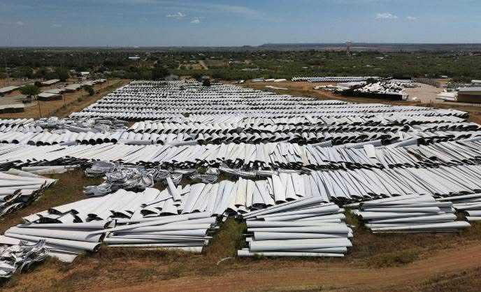 Reports are coming in about "wind turbine graveyards" where discarded blades stack up in open fields, unable to be recycled because of their fiberglass and epoxy materials—many landfills outright refuse them, forcing operators to look for makeshift dumpsites.