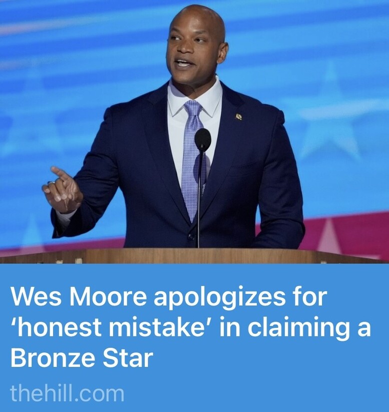 https://thehill.com/homenews/4855070-wes-moore-apologizes-bronze-star/ https://truthsocial.com/@realDonaldTrump/115104909648896585