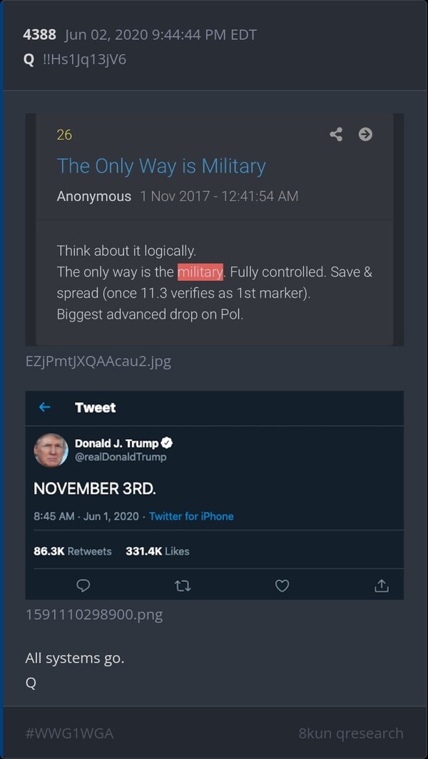 The Pentagon just added overtime hours. https://truthsocial.com/@Qanon76/116194789510611466