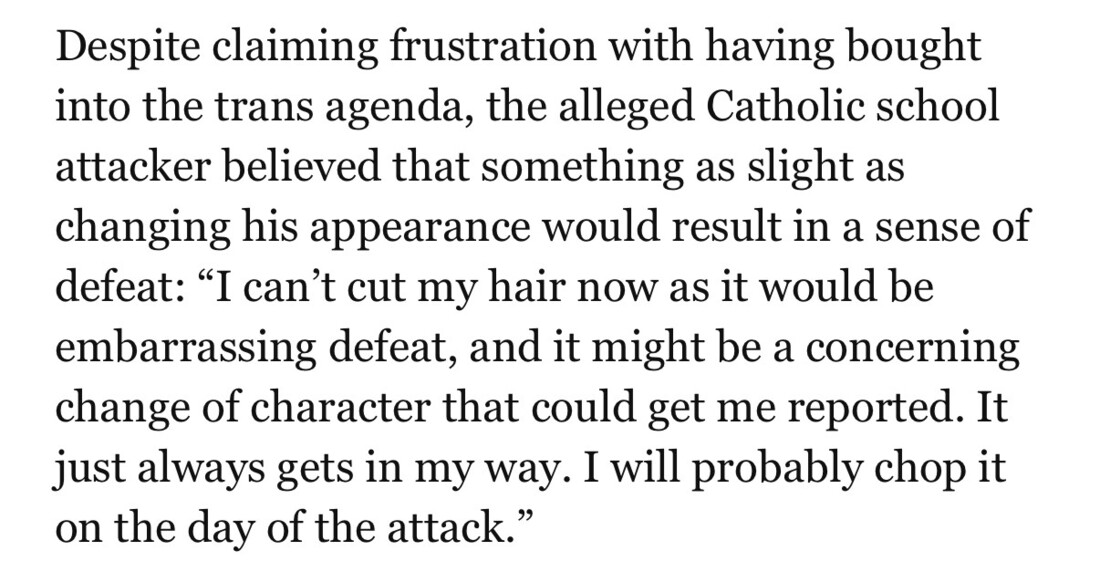 The trans shooter was AFRAID of his liberal peers 😶 he wanted out and was admitting he was fooling himself😕 DEMOCRATS DESTROY EVERYTHING 😤….. https://www.breitbart.com/2nd-amendment/2025/08/28/report-attacker-who-opened-fire-during-catholic-school-mass-said-he-was-tired-of-being-trans/ https://truthsocial.com/@Linda_Leman/115107920221592310