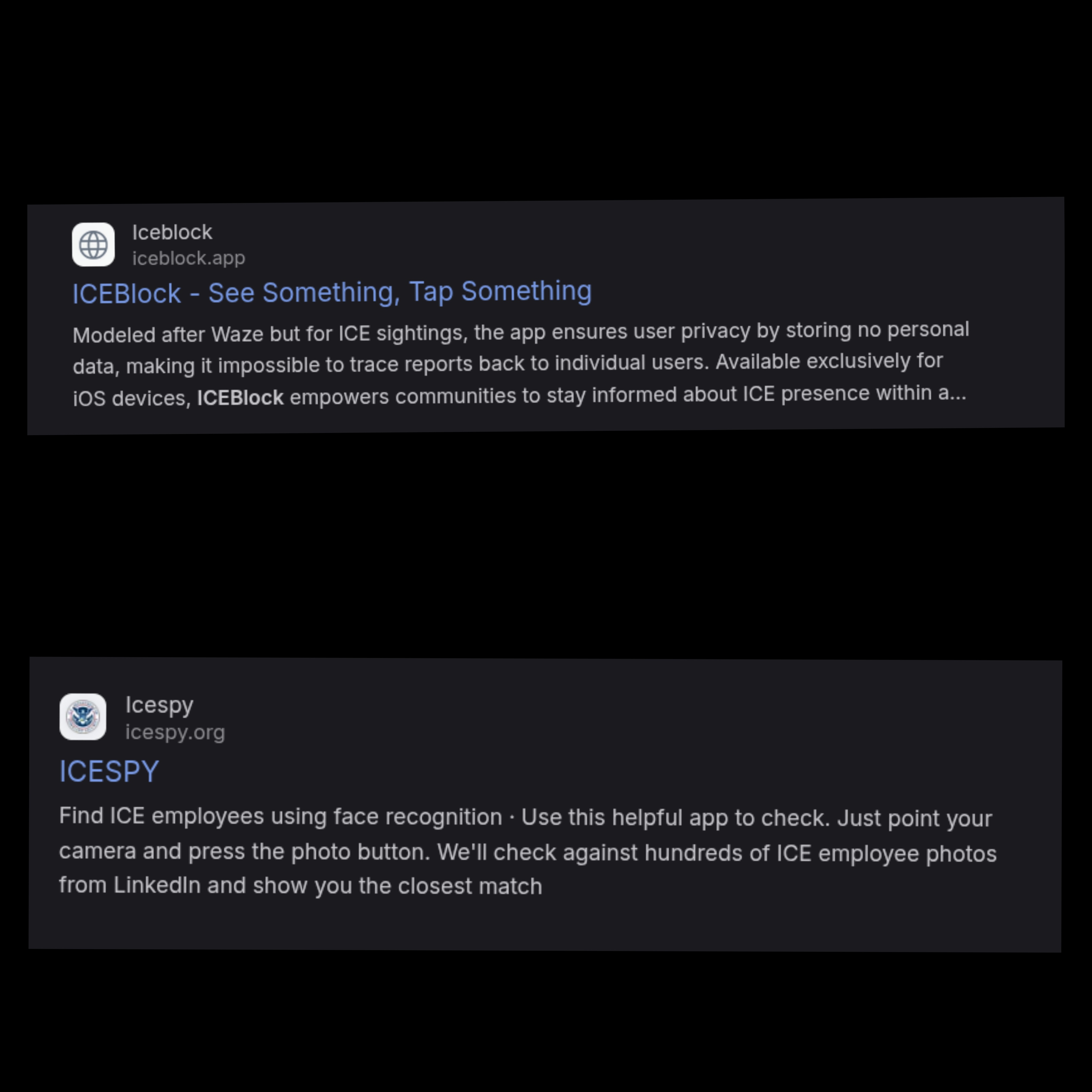 When will they call out the ICESPY facial recognition app and have it shut down? This is what they've been using to dox ICE agent with the facial recognition software giving them names and addresses, putting families, friends and neighbors in danger.