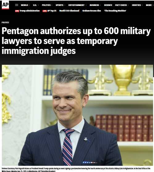BQQM: Trump’s DC federalization template is scaling, this move proves it... the Pentagon authorizing 600 military lawyers to serve as temporary immigration judges is about normalizing military-legal integration under DOJ authority, expanding federal judicial control beyond DC...