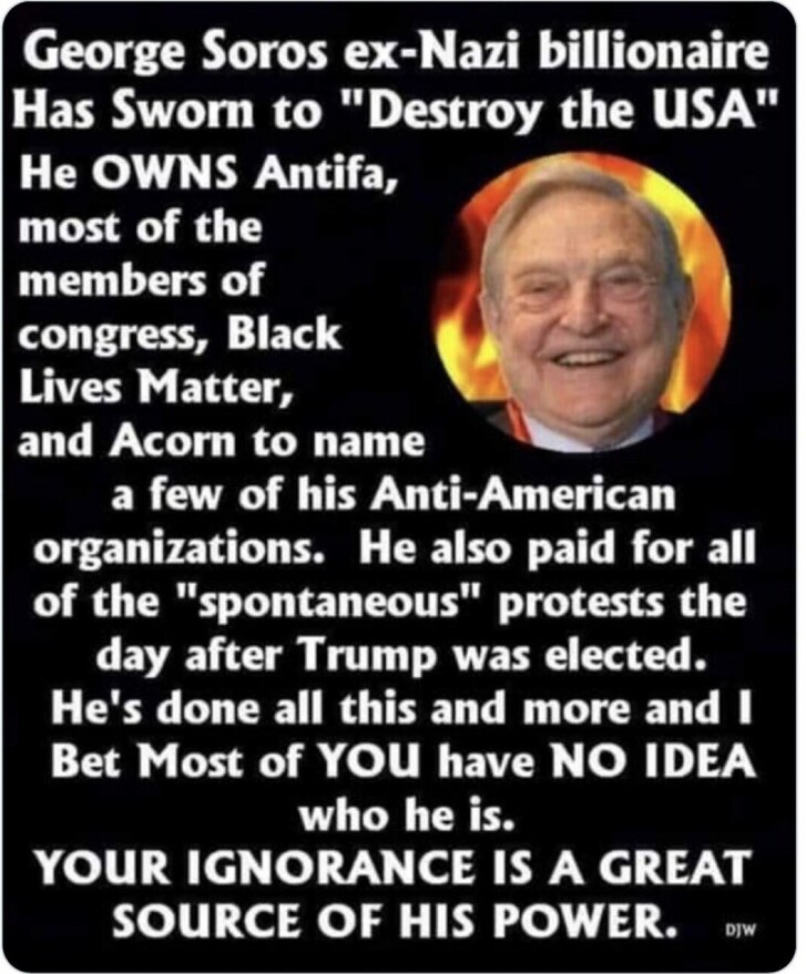 I present to you George Soros,the lord of antifa the real fascists if the West,he has been directly and indirectly involved in all protests against president Trump ever since his inauguration....he's the enemy of freedom.... https://truthsocial.com/group/q/statuses/115142305385252519