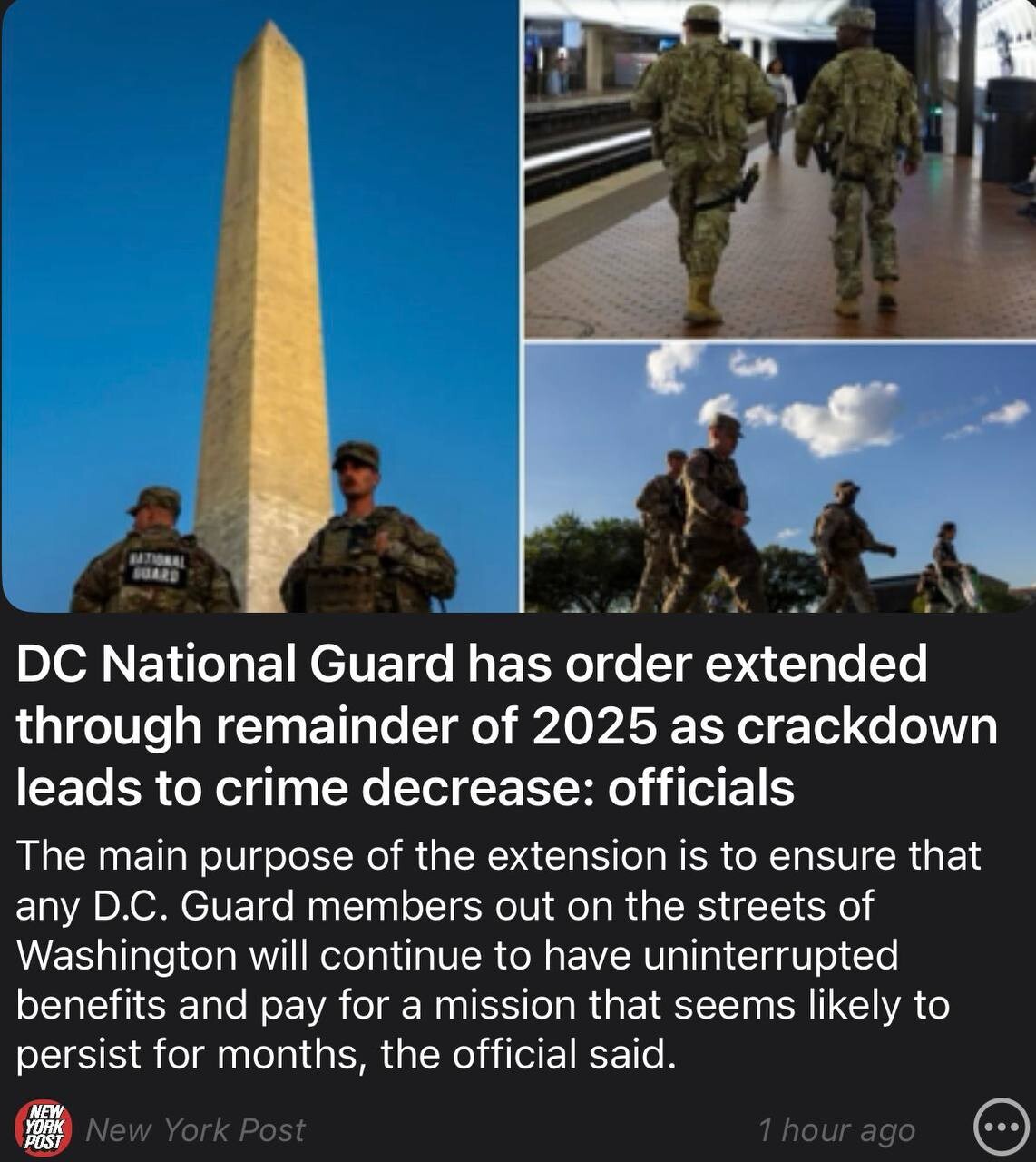Why was the National Guard order extended in Washington DC thru the end of 2025?