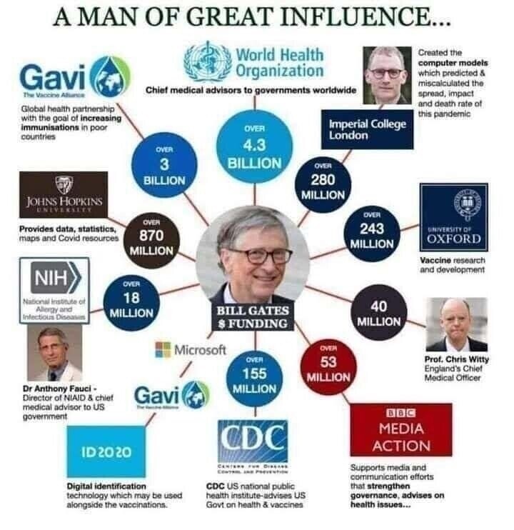 You are right on the •✔Bill Gates is only one of the many•••or •American tax player's money•••• ✔Pharmaceutical money• ✔High costs if medicines•✔ Check the stock markets on pharmaceuticals• ✔Also bribes••• perks and kick backs. ✔Money Laundering ••• Is not just Foreign aid rip offs••• Go more•••🌐🤑🌐 GREED should be their MOTTO ••• should be•••ALL FOR ONE•••• NONE FOR ALL•