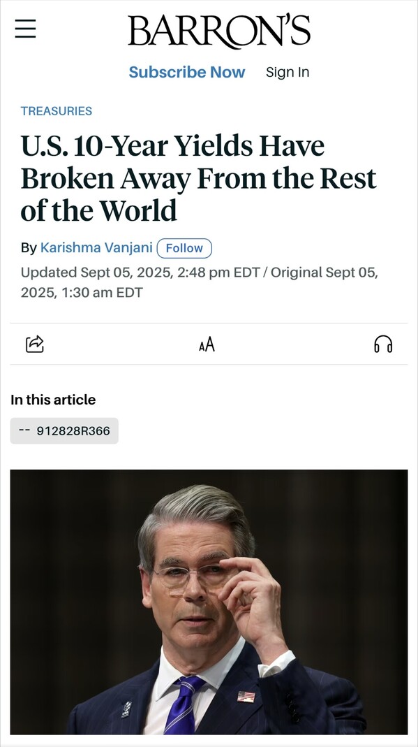 The U.S. government bond market has divorced itself from the rest of the world, perhaps influenced by Treasury Secretary Scott Bessent.