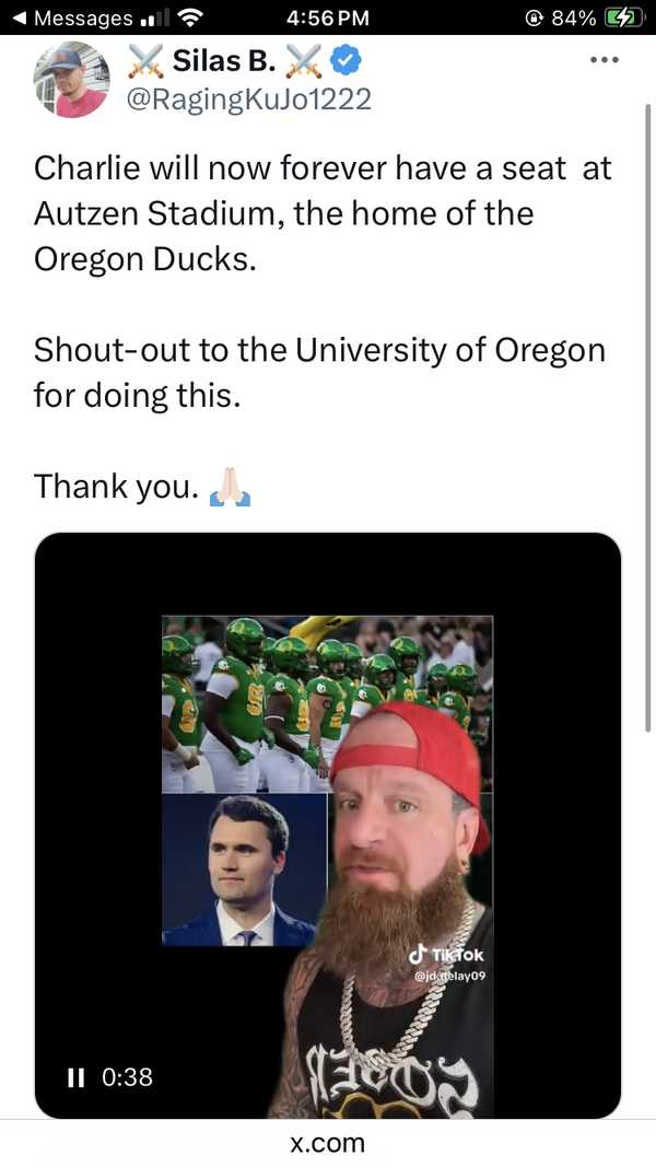 👏🏽🫶🏽 “Charlie will now forever have a seat at Austen Stadium, the home of the Oregon Duck”