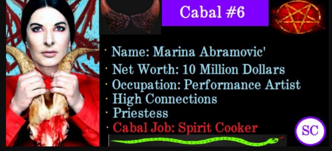 RT: For those thinking about Robert Redford today, remember that to make it big in Hollywood, you literally sell your soul. Marina Abrovamich is a high priestess in the occult. Here specialty is something called Spirit Cooking. It combines body fluids and children, among other nasty things. Side note... Emmitt Oz is also her fan. He, as a doctor, once stated that Spirit Cooking was a viable thing. https://truthsocial.com/@Ggirls63/115221582621779991