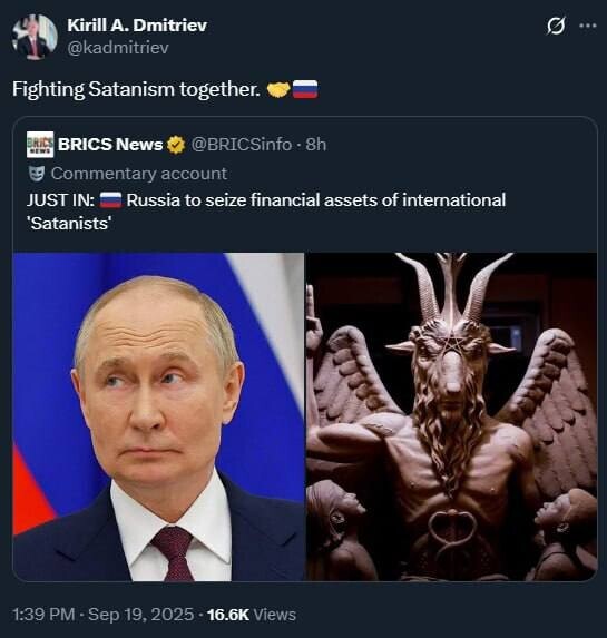 Kirill Dmetriev added “Fighting satanism together.”