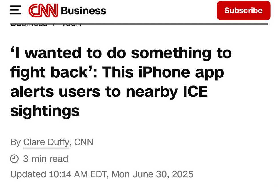 Three months ago, CNN irresponsibly gave free publicity to an app that recklessly shares the location of ICE Agents.