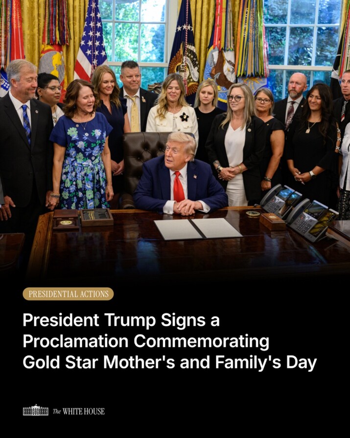 Read President Trump's Proclamation: https://www.whitehouse.gov/presidential-actions/2025/09/gold-star-mothers-and-familys-day-2025/ https://truthsocial.com/@WhiteHouse/115267277833131889
