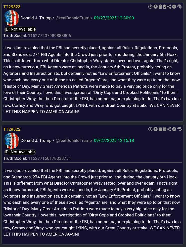 This seems to be happening more often. Trump Truths are deleted just to be reposted. Don't look like any corrections have been made. Interesting to say the least.