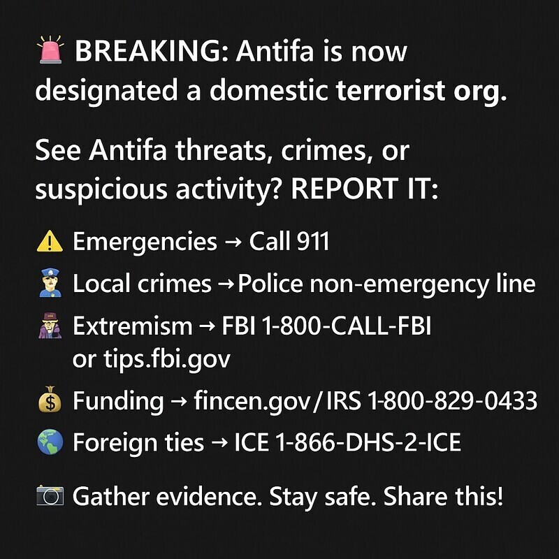 See Antifa threats, crimes, or suspicious activity? REPORT IT: