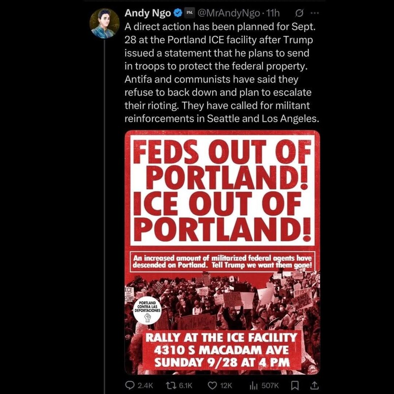 So they know the feds are coming and they double down calling for “reinforcements” from Seattle and Los Angeles. https://truthsocial.com/@Laura3125/115283275757615078
