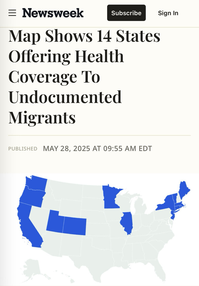14 states let illegal aliens access Medicaid programs. They game the system and funnel your federal tax dollars to cover it.
