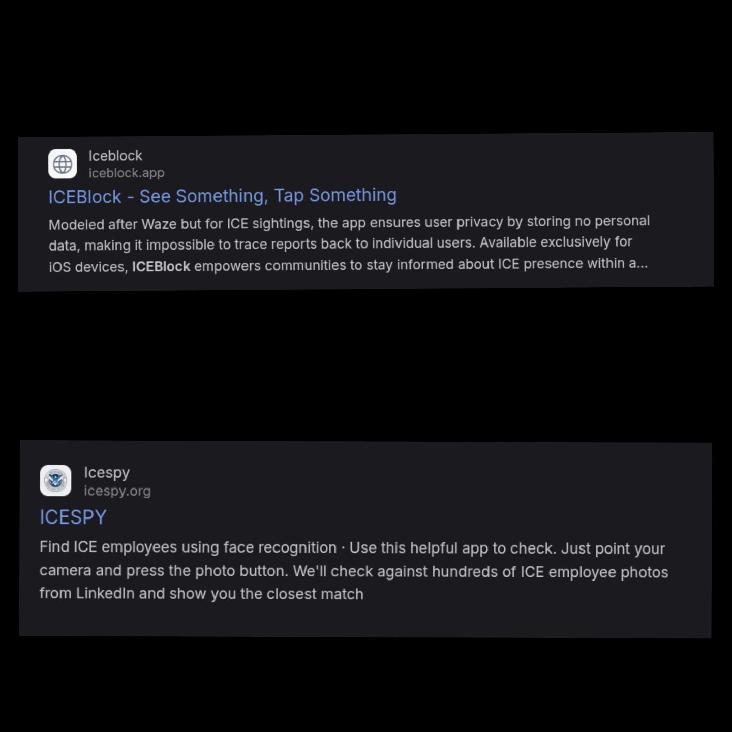 While we're taking down the iceblock app take down icespy. Icespy is a facial recognition app inked to databases doxing immigration and customs enforcement agents home addresses putting not just the agents in danger, but their homes, families and neighbors in danger also.