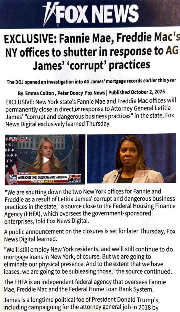 Corrupt Letitia James is costing New York State Hundreds of Billions of Dollars in lost business. No company or individual wants to be there, knowing that she’s the “Attorney General.” She is a Complete and Total Disaster, who tried running against Kathy Hochul for Governor, and only got 1% of the Vote in Polls, and QUIT. She then went back to her WITCH HUNT against President Donald J. Trump, and others. Until this “SCUM” is removed from the Attorney General’s Office, no company will move to New York, and few companies will be using the New York Stock Exchange, or NASDAQ, for going Public. The new Texas Exchange will be taking ALL of this business away, and we’re talking Hundreds of Billions of Dollars! https://truthsocial.com/@realDonaldTrump/115317676598981431