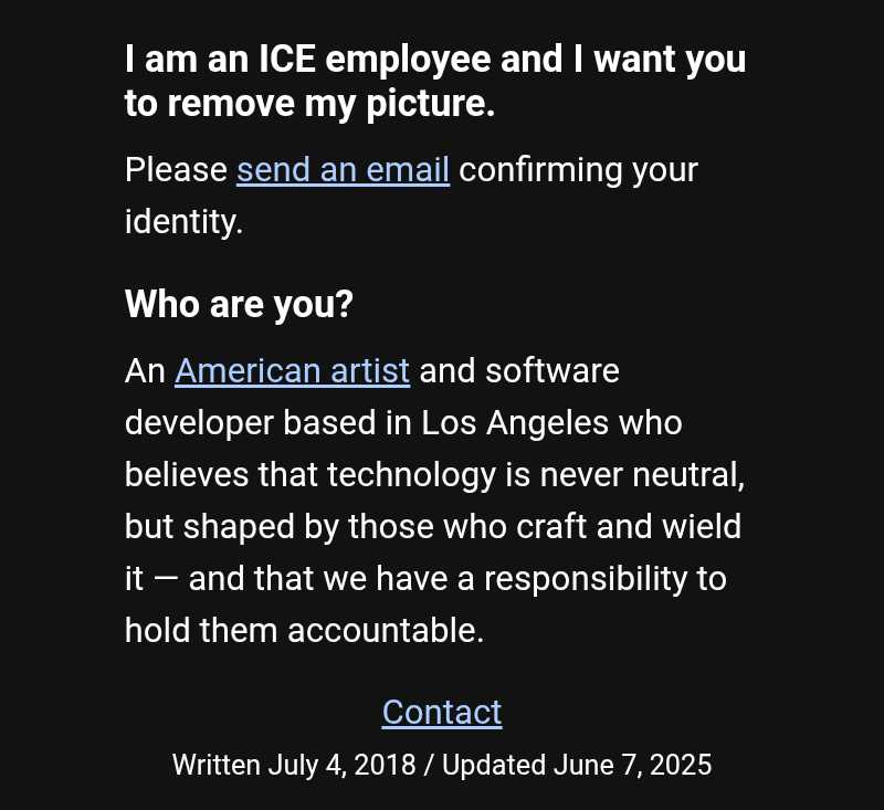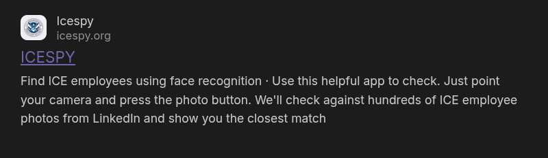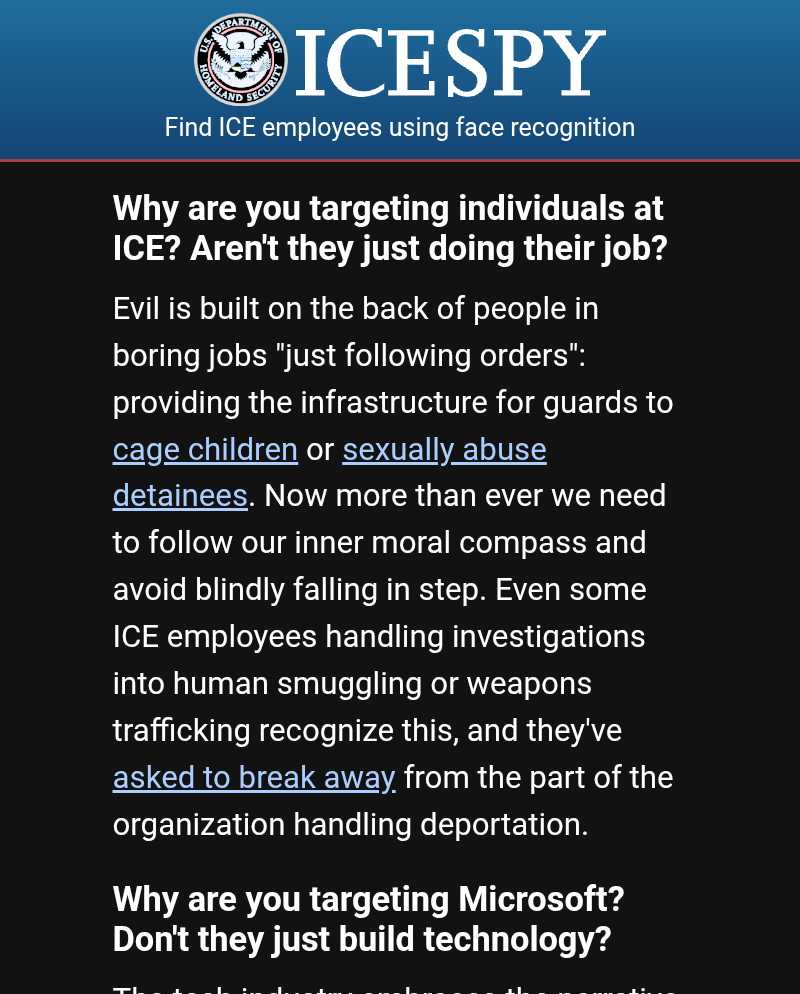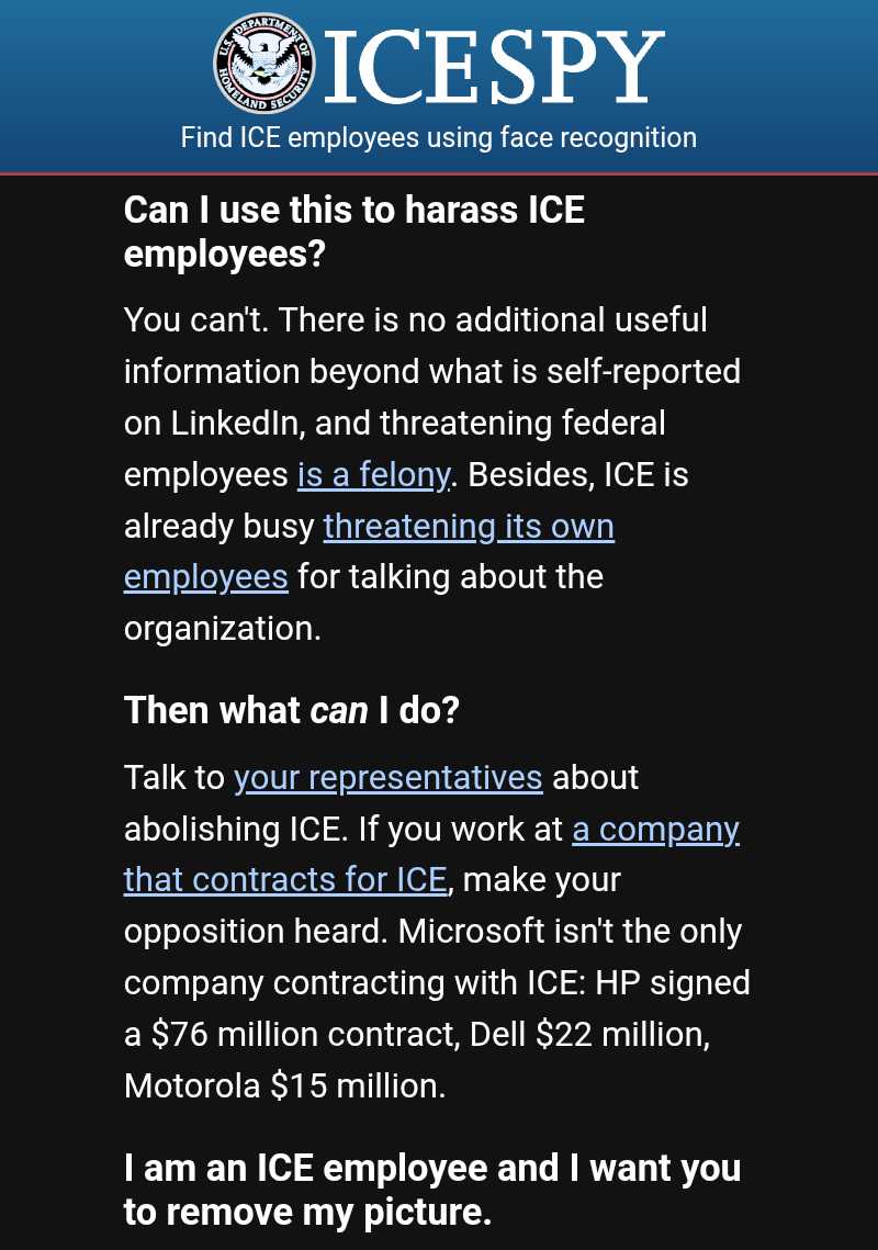 ICESPY uses facial recognition software to dox ICE agents home addresses putting their families and neighbors in danger also. It needs taken down too. Don't fall for the deceptive wording.