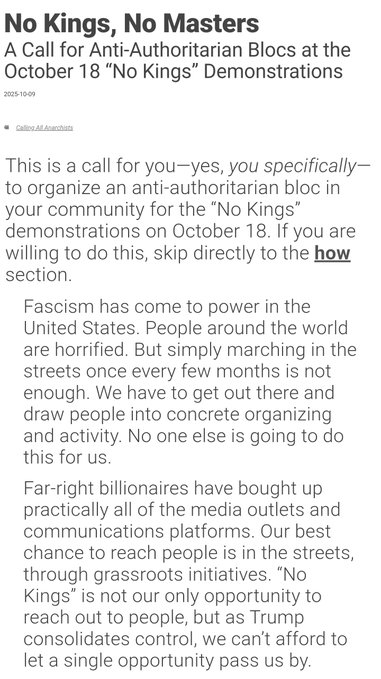 , one of the largest and most influential violent Antifa organizing sites, has released a call-to-action for anarchist extremists to infiltrate the "No Kings" protest on Oct. 18.