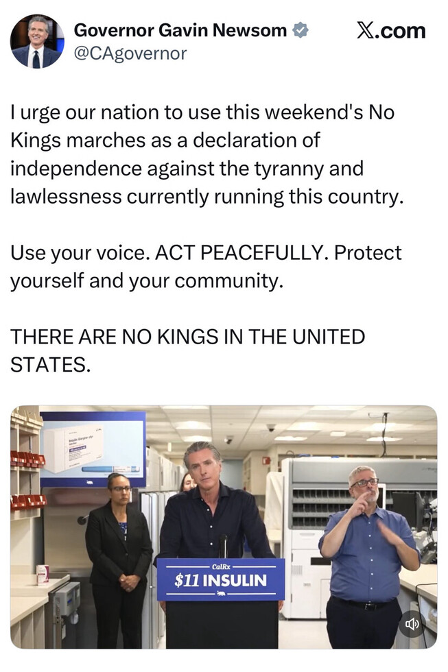 RT: 👑 “No Kings” — funny coming from California’s crowned hypocrite.