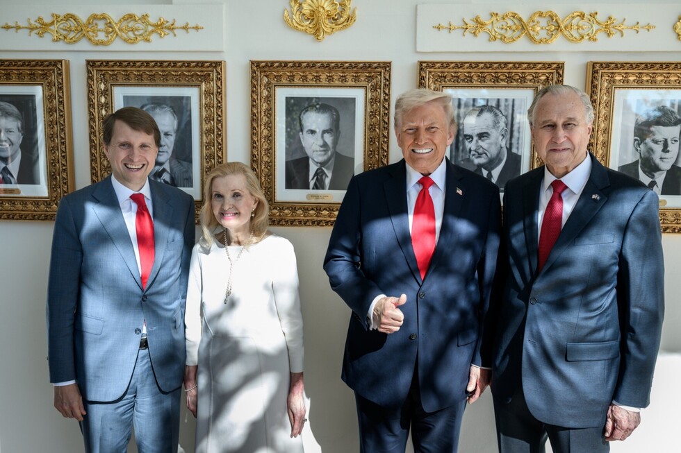 President Trump shows President Nixon's daughter, Tricia Nixon Cox, and family the portrait of her father on the White House Colonnade. 🤍🇺🇸