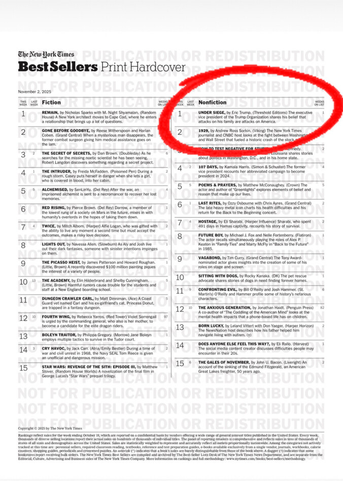 Congratulations to Eric Trump — Such a Great Honor to be Number One! https://truthsocial.com/@realDonaldTrump/115420411260976917