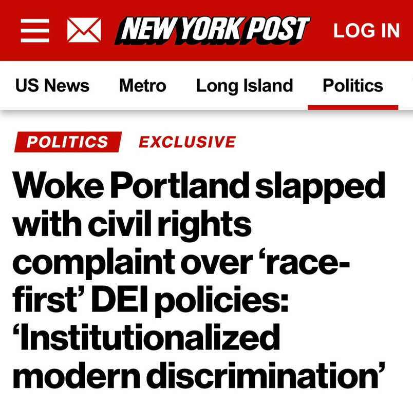 https://nypost.com/2025/10/20/us-news/woke-portland-slapped-with-civil-rights-complaint-over-race-first-dei-policies/ https://truthsocial.com/@AmericaFirstLegal/115409559927808625