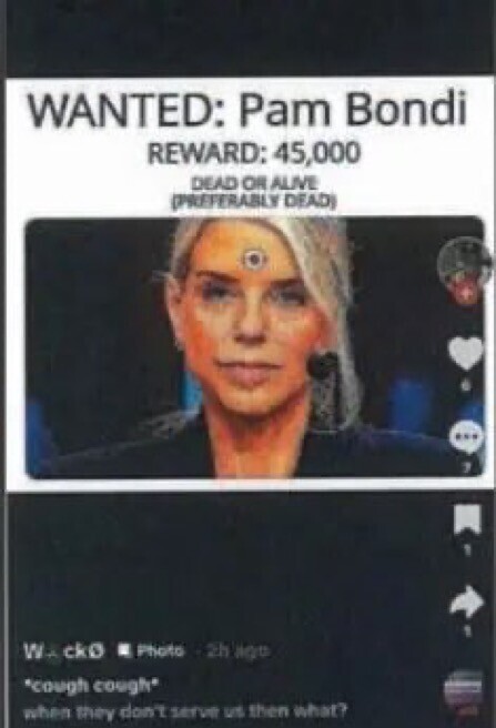 RT: Holy crap! FAFO! Minnesota man Tyler Maxon Avalos ARRESTED by FBI after a TikTok posting offering $45,000 bounty on Pam Bondi’s head😳.