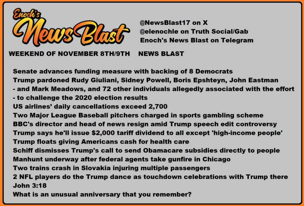WEEKEND OF NOVEMBER 8TH/9TH NEWS BLAST