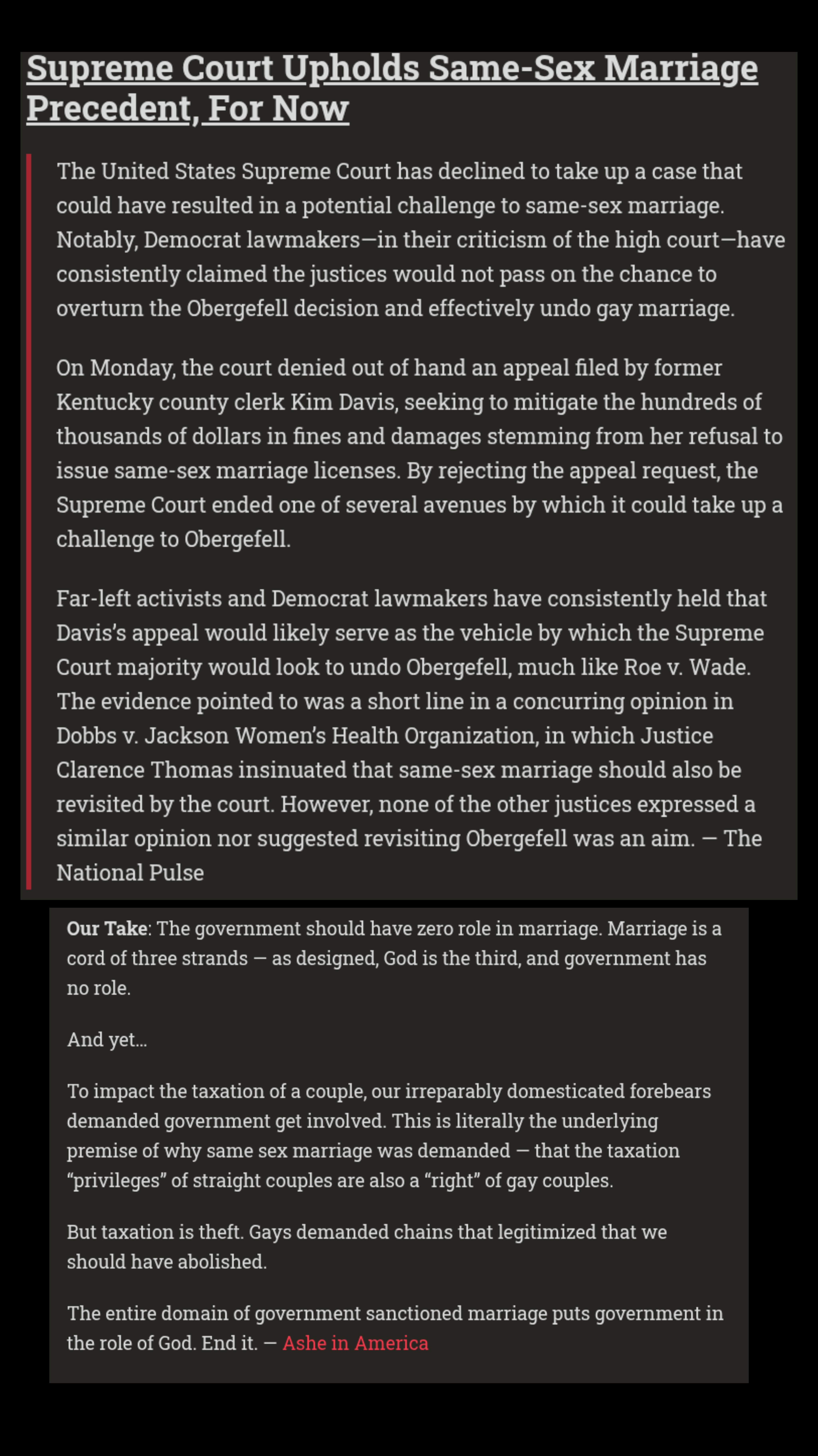 I'm in agreement with Ashe, government should not be involved in marriage.