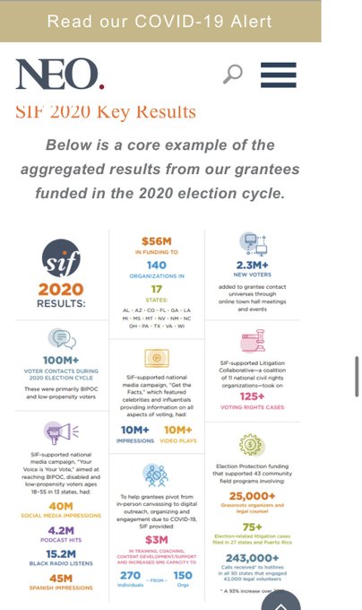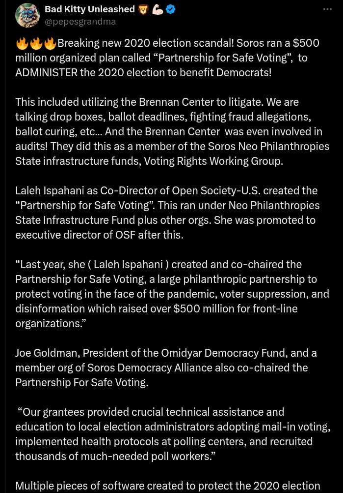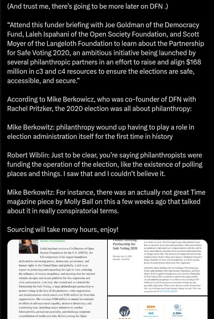 This included utilizing the Brennan Center to litigate. We are talking drop boxes, ballot deadlines, fighting fraud allegations, ballot curing, etc… And the Brennan Center was even involved in audits! They did this as a member of the Soros Neo Philanthropies State infrastructure funds, Voting Rights Working Group.
