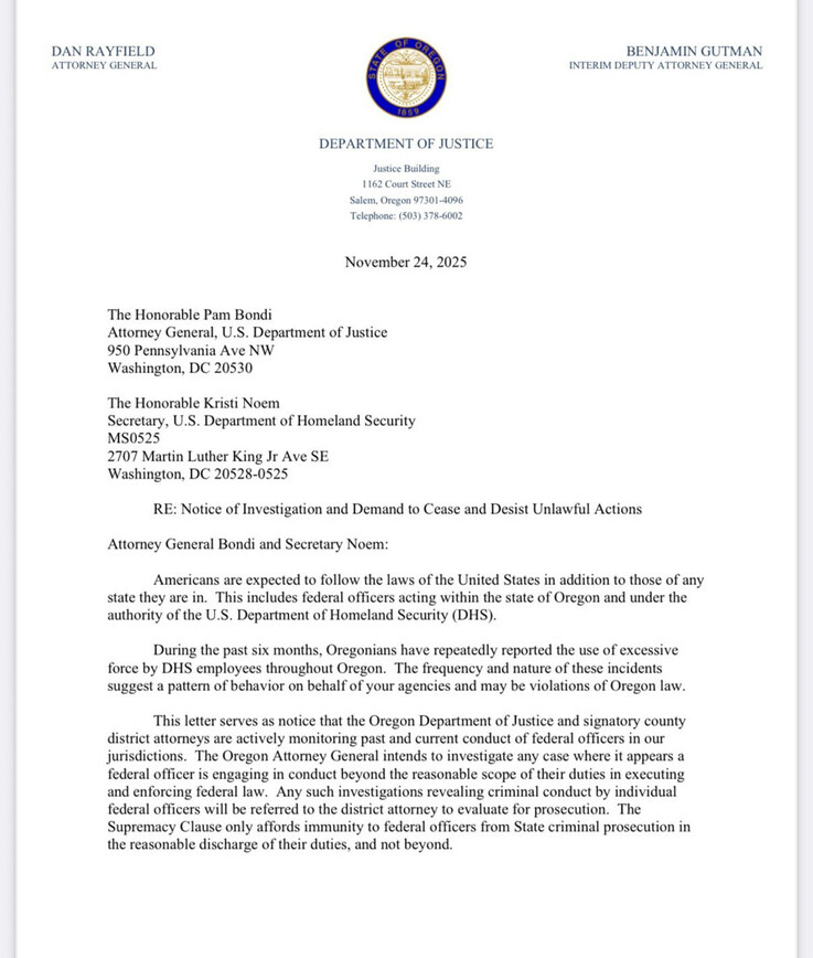 Assistant AG Harmeet Dhillon told Oregon to SCREW OFF after the Democrat governor and AG promised to arrest and prosecute federal agents who round up illegals and quell riots https://truthsocial.com/@usatrump2020/115624289289265640
