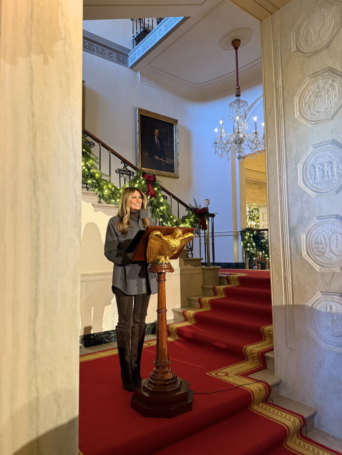First Lady giving Christmas salutations at the White House. So nice! https://truthsocial.com/@realDonaldTrump/115645716721136333
