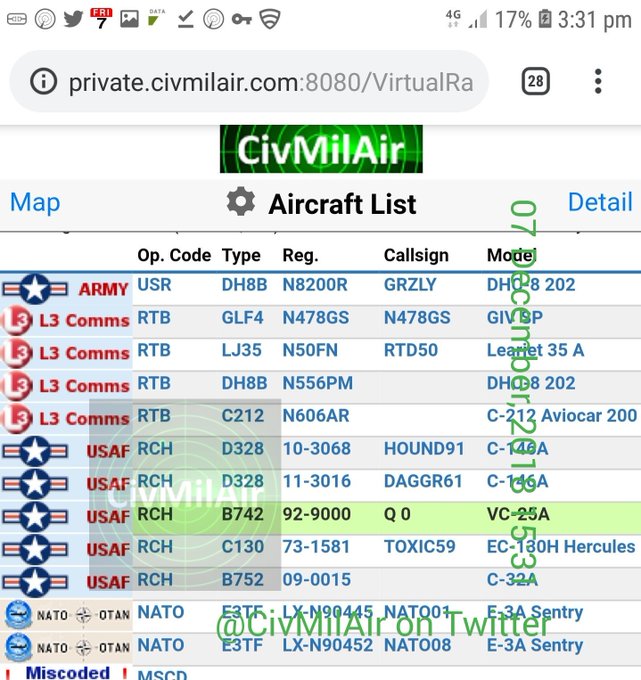 #AirForceOne - Callsign showing: 'Q 0'