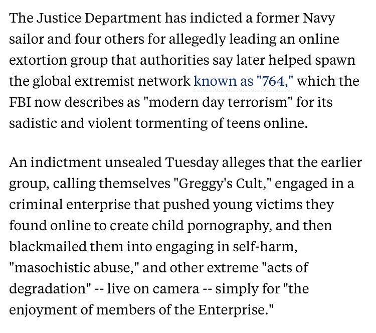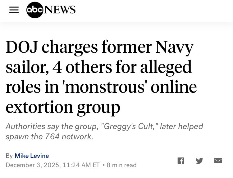 A new 👉 unsealed indictment 👈 by the US DOJ has charged a former US Navy Sailor, and several others, with child exploitation, conspiracy to produce child sexual abuse materials including pornography, criminal extortion, and more. https://truthsocial.com/@RealSGAnon/115687484588616623