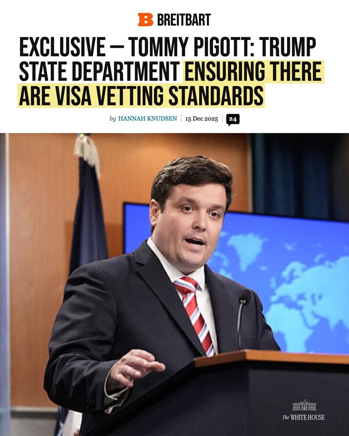 READ: https://www.breitbart.com/politics/2025/12/15/exclusive-tommy-pigott-trump-state-department-ensuring-there-are-visa-vetting-standards/?fbclid=IwY2xjawOuaMlleHRuA2FlbQIxMABicmlkETE0VG9EY0N5TTgxekxCOWZkc3J0YwZhcHBfaWQQMjIyMDM5MTc4ODIwMDg5MgABHlA0wRrmP1o3ACTRAlsbcPkf6H9YG8PT411LeGLw7XYXO5NHmGjdY6UsnWmg_aem_wjiZ8E31HatMpf7VkaJEFQ https://truthsocial.com/@WhiteHouse/115730201091539970