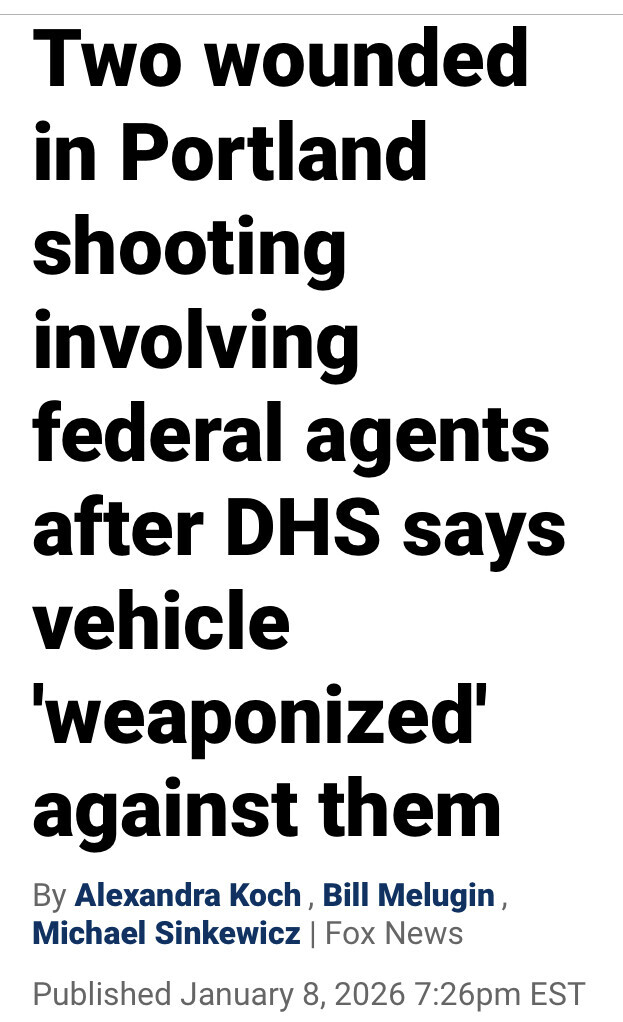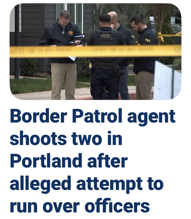 🚨🧊💥🚗🚨. The Department of Homeland Security (DHS) confirmed a U.S. Border Patrol agent shot two people in Portland, Oregon, after the driver of a car allegedly attempted to run over federal officers. https://www.foxnews.com/us/two-wounded-portland-oregon-shooting-involving-federal-agents-city https://truthsocial.com/@tinygma/115865258283553109