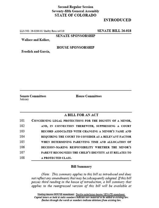 HOLY SHIT. Four Colorado Democrats have introduced a bill that would allow children to change their name, suppress records documenting a name change, and allow the court to strip away parents’ rights if they do not “affirm” their child's name change.
