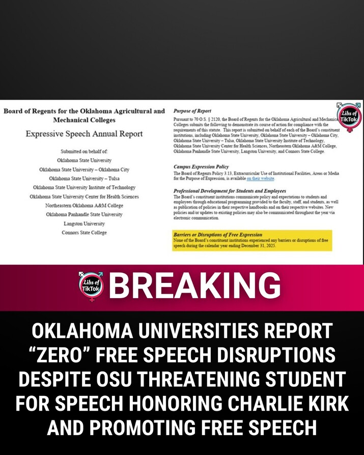 BREAKING: A free speech report for multiple Oklahoma universities claims there have been ZERO instances of "disruptions to free speech" on college campuses during 2025