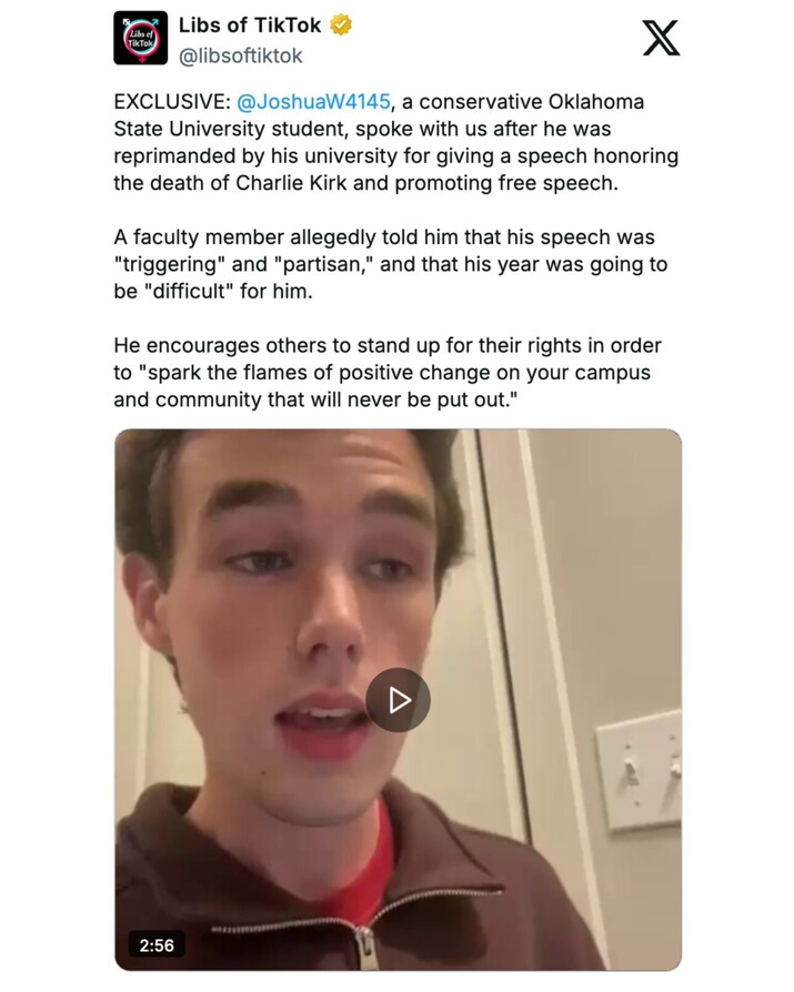 Why did Oklahoma State University omit this disruption of free speech from this report? https://truthsocial.com/@libsoftiktok/115906797142552723
