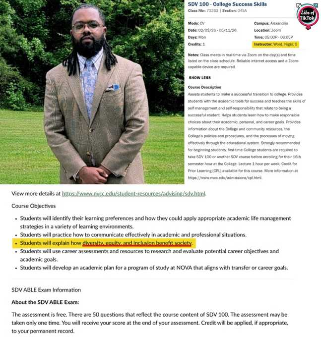 INBOX: Nigel Word, an instructor at Nova Community College in Virginia, is teaching a required course called "College Success Skills," which has students "explain how diversity, equity, and inclusion benefit society."