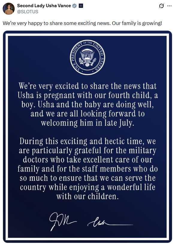CONGRATULATIONS TO VICE PRESIDENT @JDVance1 AND SECOND LADY USHA VANCE! ❤
